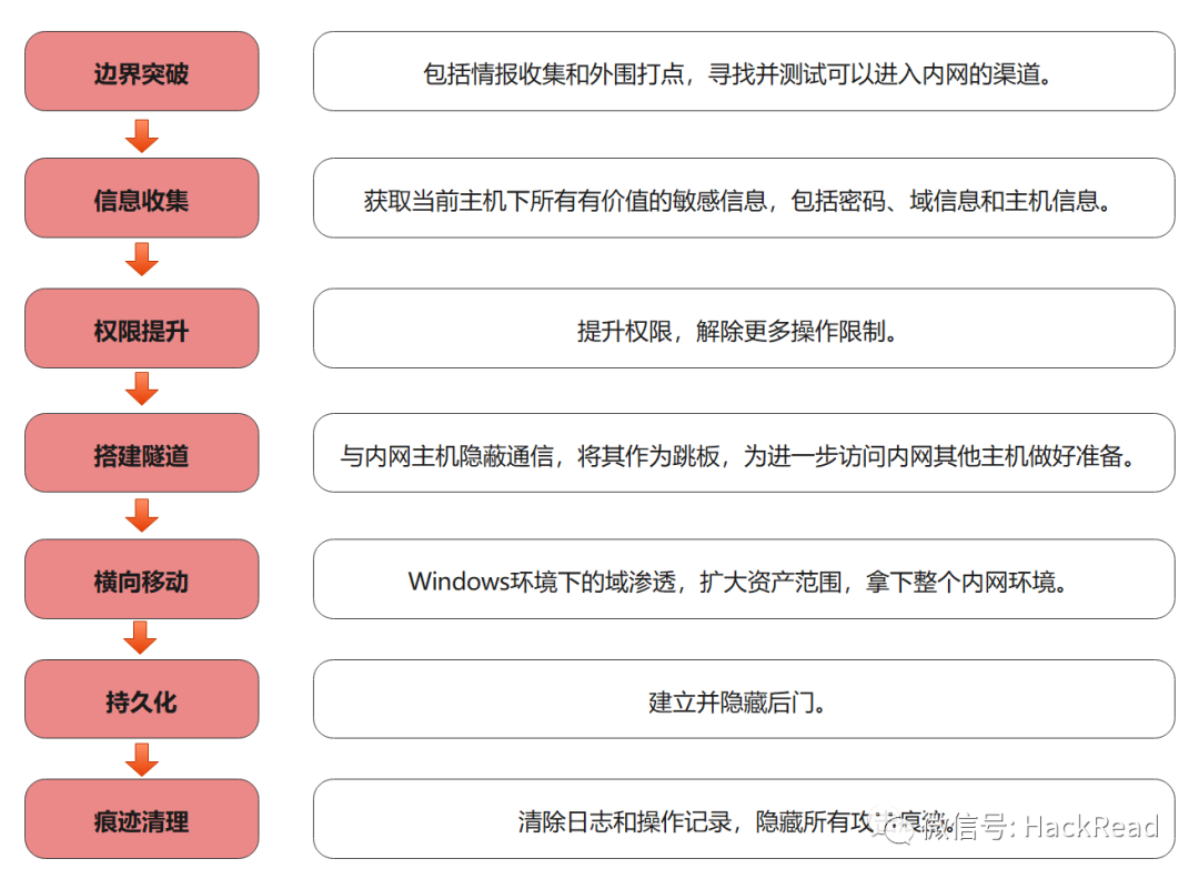 我们总是先通过对外提供服务的,防守最薄弱的主机打进去,然后搭建隧道,通过该主机访问内部的其他主机。快速横向移动到到内网中的核心资产,获取核心敏感数据和权限,完成一次疼痛的打击。