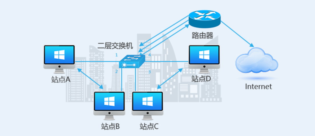 - 二层交换机可以充当网桥,将计算机网络系统的各种终端设备连接在一个平台上。它们能够非常快速且有效地将数据从LAN 网络的源端传输到目标端。