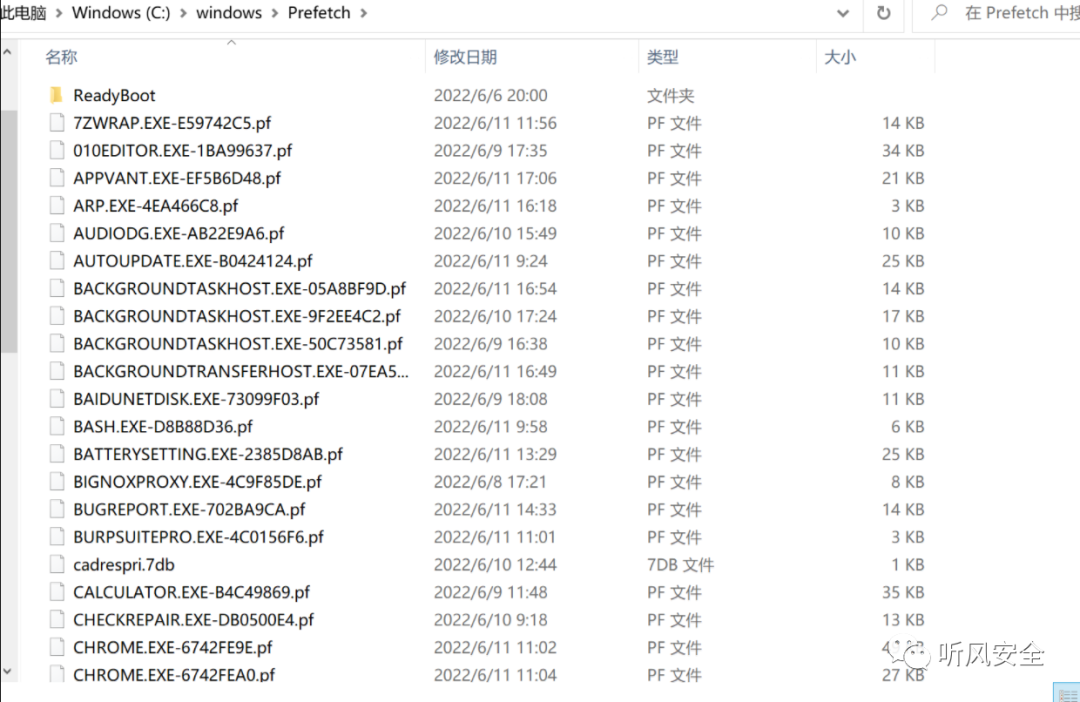 Win+R输入【%SystemRoot%\Prefetch】即可发现pf预读取文件