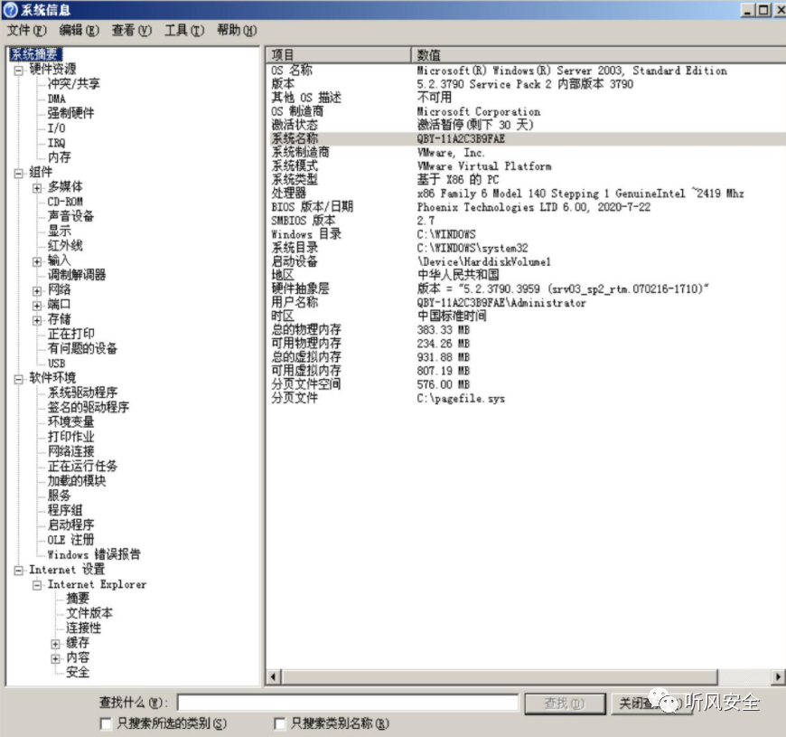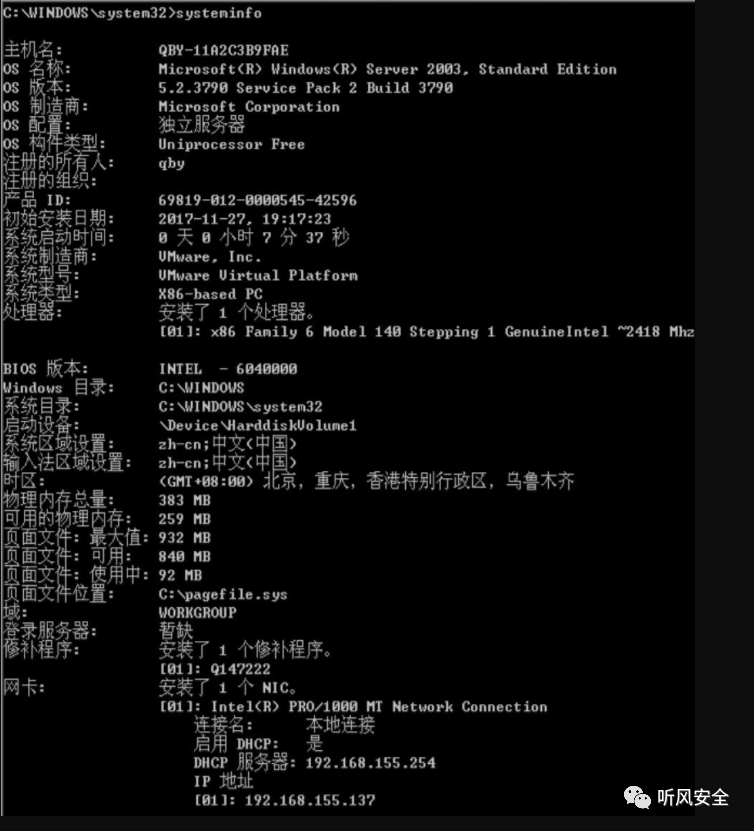 如果只是简单的了解可以通过命令行输入【systeminfo】该命令能查看主机名、操作系统版本等信息。