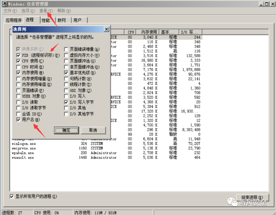 实践中我发现了各版本间有写不同,比如win10在进程格右键就能选择,而2003在【查看】选项中,win7的叫法也有所不同,不过差距都不大。Windows 2003我没有发现显示映像路径和命令行设置设置,很苦恼T T