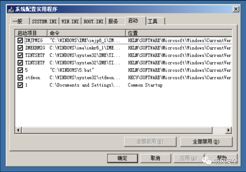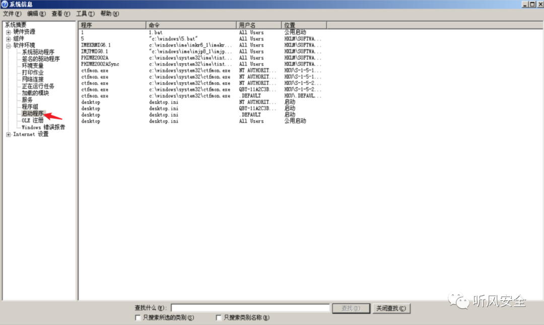 启动项是病毒后门等实现持久化驻留的一种常用方法,在应急响应中也是排查的必要项目