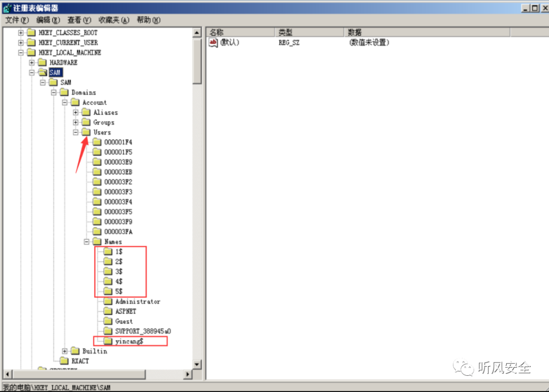双击Users文件夹可以看到对应账号F值的二进制数据(可右键导出),若发现两个账号相同 ,则发现克隆账号。