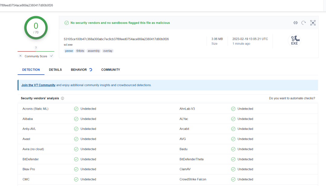 上传VT,结果出来实现VT全免杀!至此实验结束。
