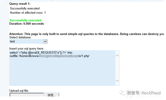 上传成功之后,突然想到了sql写shell失败是不是因为目录权限问题,网站限制了除上传目录外其它目录都不可写?