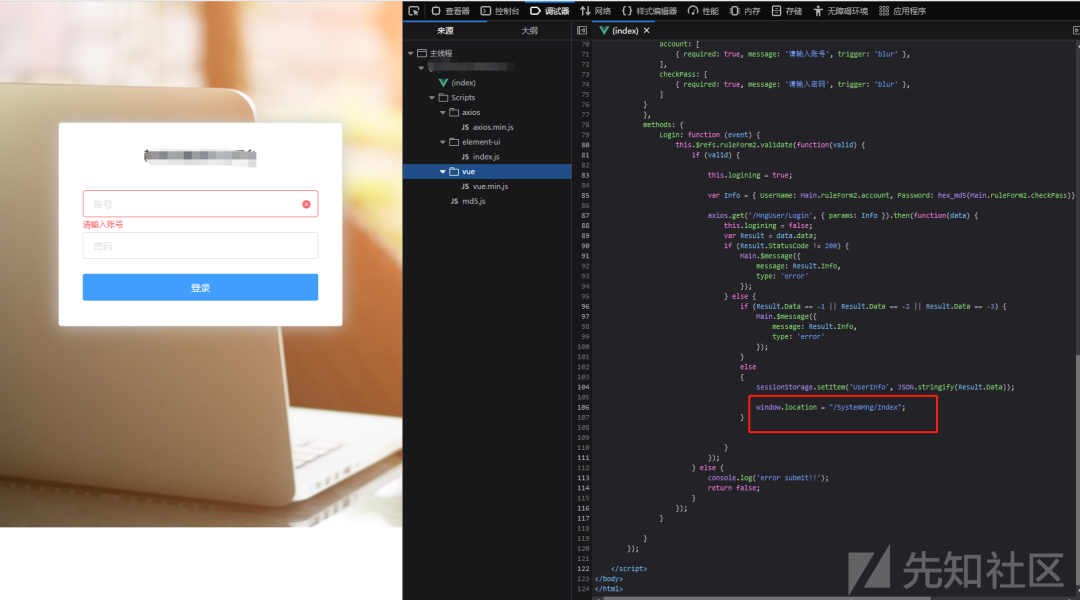 在渗透测试过程中,碰见的web登录页面特别多,那么我们应该用什么样的思路去进行一个测试呢,下面看看我的一些测试师思路ba当看见一个这样的web登录框时,会怎么样进行一个渗透呢我们可以看见 这个登录时并没有存在一个验证码,就会存在一个爆破问题 那么一般爆破的用户名又会存在那些呢这里也可以去查找对应系统的的操作手测,收集管理账号,增加爆破机率我们可以去扫描目录 可能一些被扫描出来的目录未做鉴权 可直接访问发现在index.js中存在一个/SystemMng/Index的url到这里我们拿到了管理员的账号以及电话了,也可以直接重置他们密码了(拿正确的账号再去尝试爆破)可以看见 password被加密了 发现为m5 我们利用burp自带的转码爆破即可爆破成功 账号比较复杂 在没前面的操作下拿不到用户名现在已经拿到了普通用户的账号密码了,那我们后面应该去尝试一个越权 垂直越权 或者 平行越权拿爆破的号进行登录抓包处理,这个地方师傅们在挖掘的时候可以多看几遍数据包以及返回包开始在构造时 以为是校验ID 后面多测试几轮下来,发现只会去识别code参数原文链接:https://xz.aliyun.com/t/11612原文作者:MiNi