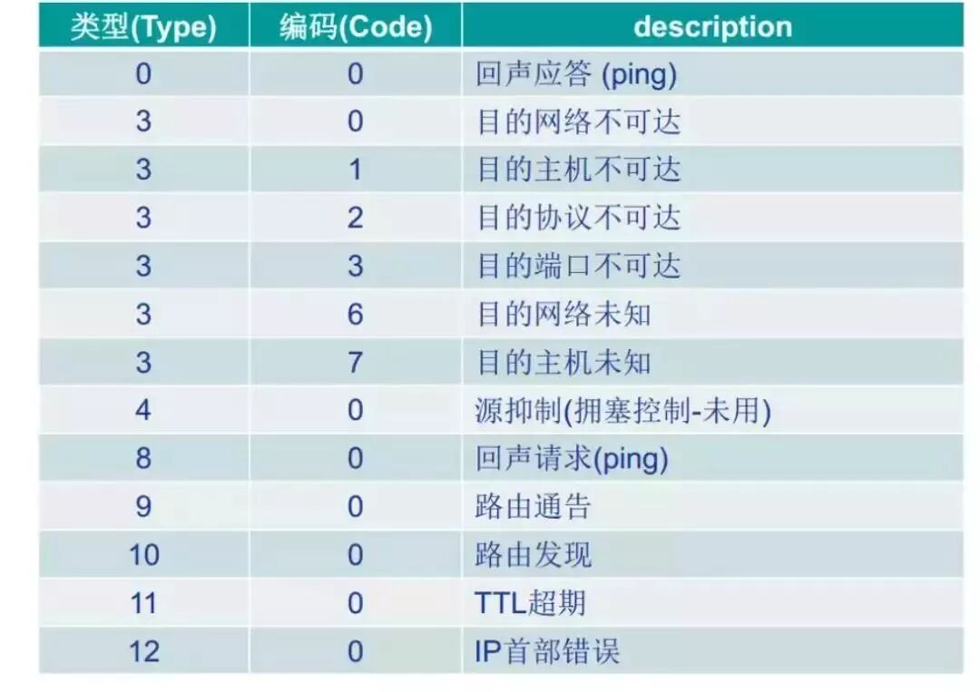 下图是对应的类型和代码释义列表,后面分析抓包的时候会用到。
