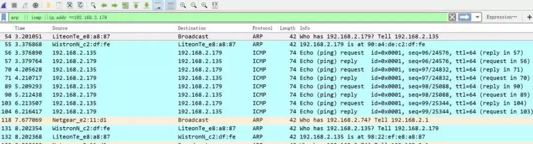 可以看到,上图中在真正 ping之前并没有进行一次 ARP请求。