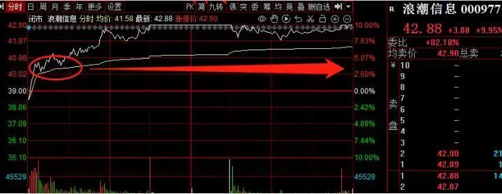 实例分析:以20230301周三的浪潮信息分时线为例。分时线始终在均线之上,代表强势,随后单边上涨,运用均线支撑规则,3%时买入,日内成功赚取7个点利润。