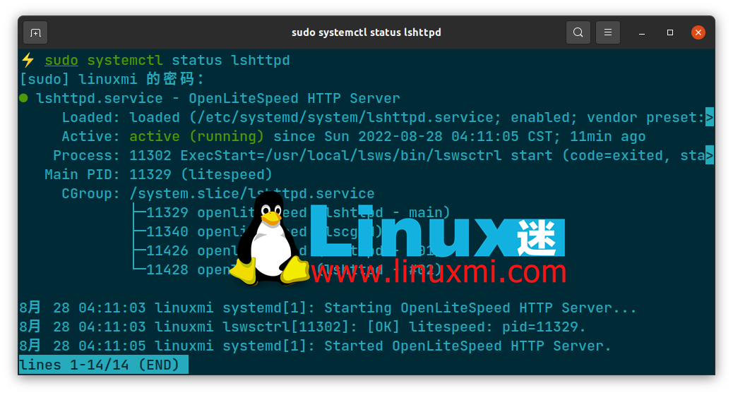 接下来,使用以下命令验证 OpenLiteSpeed 服务的状态: