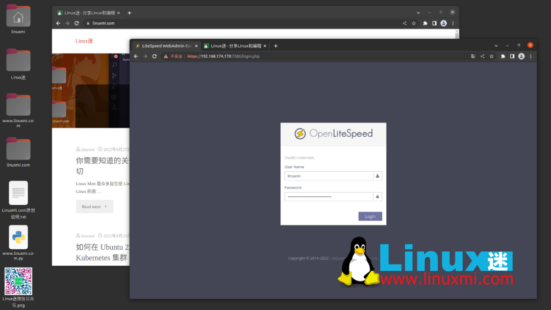 OpenLiteSpeed 提供了一个默认监听端口 7080 的 Web 控制台。您需要设置管理员用户名和密码才能访问它。