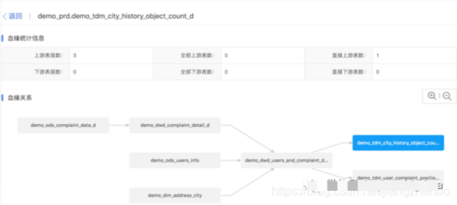 一般是以树形结构组织元数据,按不同类型对元数据进行浏览和检索。如我们可以浏览表的结构、字段信息、数据模型、指标信息等。通过合理的权限分配,元数据查看可以大大提升信息在组织内的共享。数据血缘和影响性分析主要解决“数据之间有什么关系”的问题。因其重要价值,有的厂商会从元数据管理中单独提取出来,作为一个独立的重要功能。但是笔者考虑到数据血缘和影响性分析其实是来自于元数据信息,所以还是放在元数据管理中来描述。血缘分析指的是取到数据的血缘关系,以历史事实的方式记录数据的来源,处理过程等。![]()