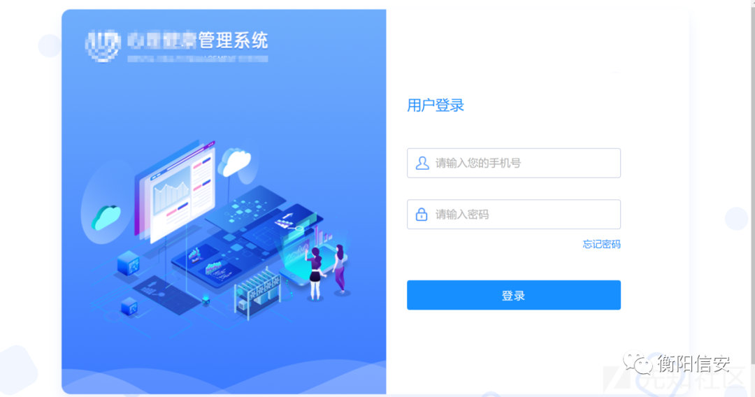 目标站点长这样,还是熟悉的登录框,此时我的思路是,爆破管理员的用户名和密码,但这里登录的方式很明显是通过手机号来登录的,也就是说还得知道管理员的手机号码才能进行爆破,难度有点大,先放弃这种方法,常规的话如果知道了管理员的用户名,还能去测一下找回密码处,是否有逻辑漏洞,因为本人信息收集能力不信,收集不到管理员的手机号码,所以爆破和找回密码这个点先放弃。