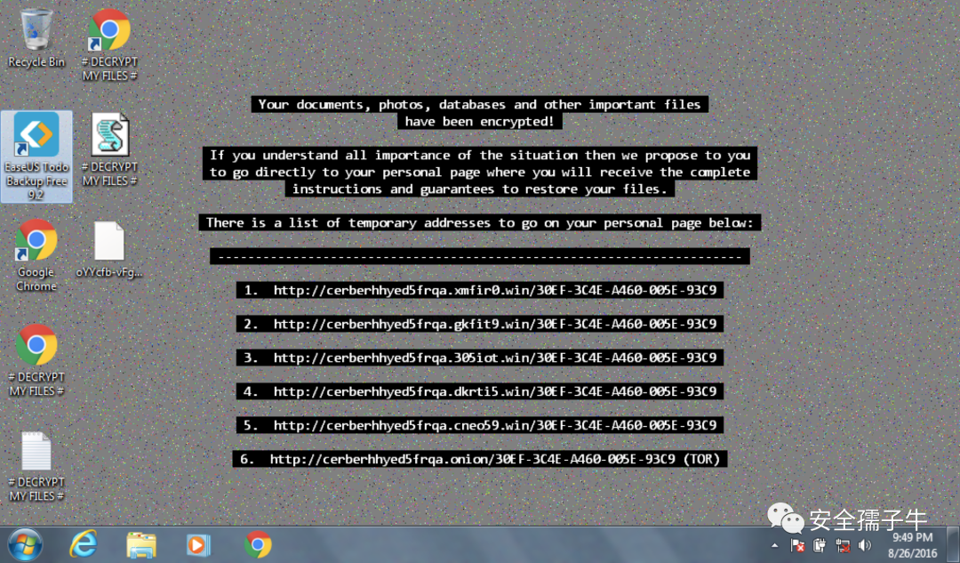 在第二种情况下,您的一个用户在 Windows 桌面上看到此图像,该图像声称系统上的文件已加密,必须付款才能取回文件。Wayne Enterprises似乎有一台机器感染了Cerber勒索软件,您的目标是调查勒索软件,以期重建攻击。