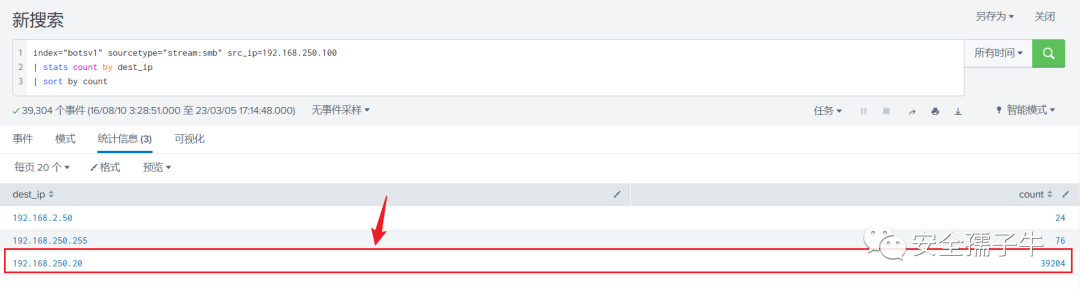 基于工作站的连接的目的地址,查看通过SMB连接的地址,并且数据量比较大的主机