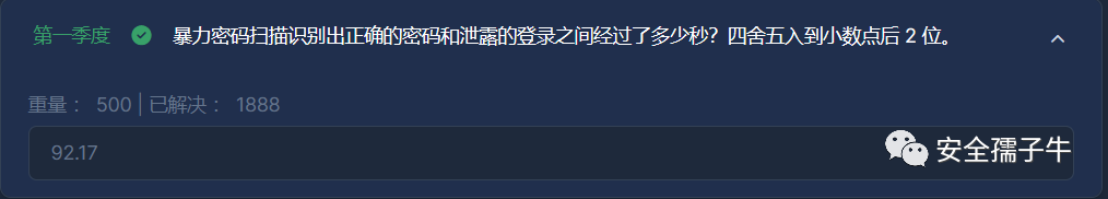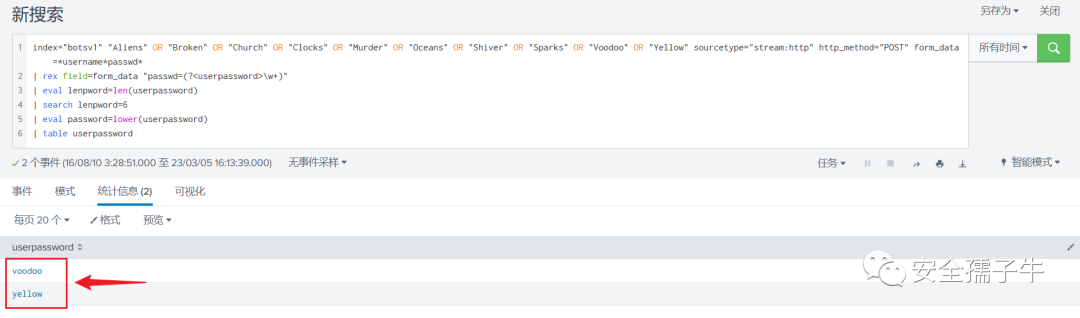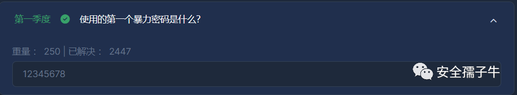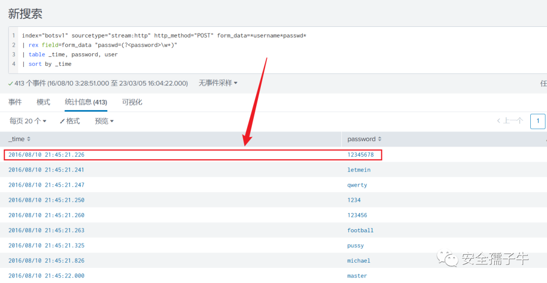 通过过滤出http的POST请求,并且在from_data字段中获取到的passw字段内容,通过基于时间从小到大的顺序,获取到第一个爆破的密码