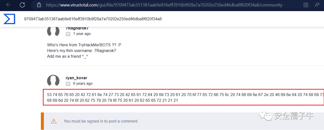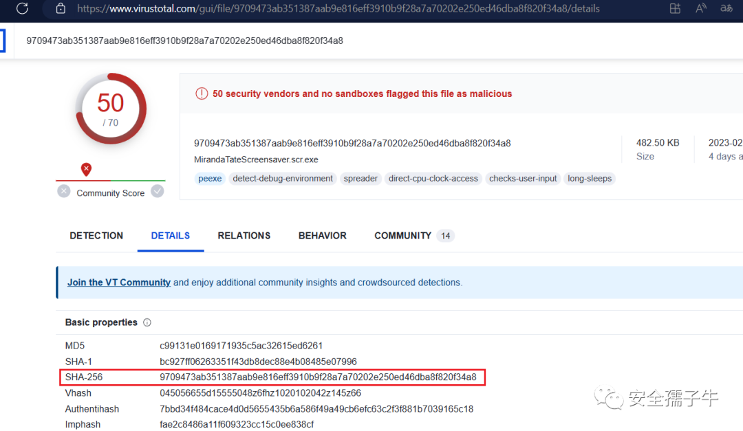 在VT上查看文件关联信息,可以看到十六进制代码