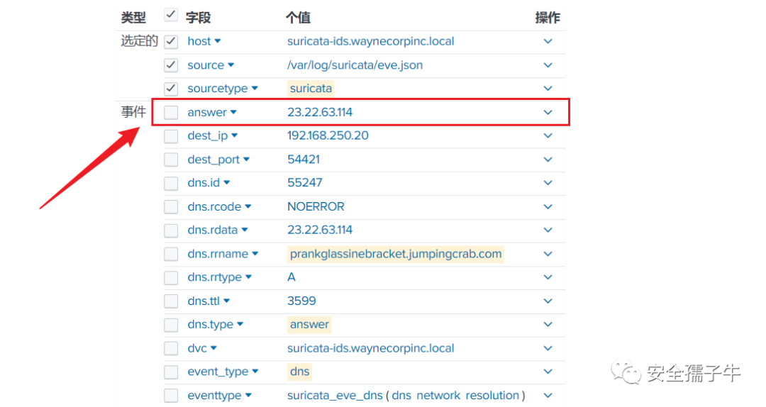 index="botsv1" sourcetype="suricata" event_type=dns dns.type=answer dns.rrname=prankglassinebracket.jumpingcrab.com