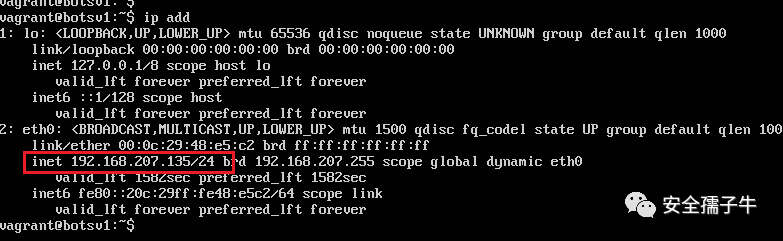 使用VMwareworkstation导入OVA虚拟机,开启虚拟机以后通过vagrant/vagrant登录到虚拟机,获取虚拟机IP地址。