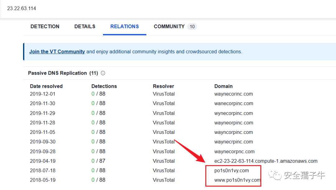 通过VT进行IP地址查找,关联到域名信息