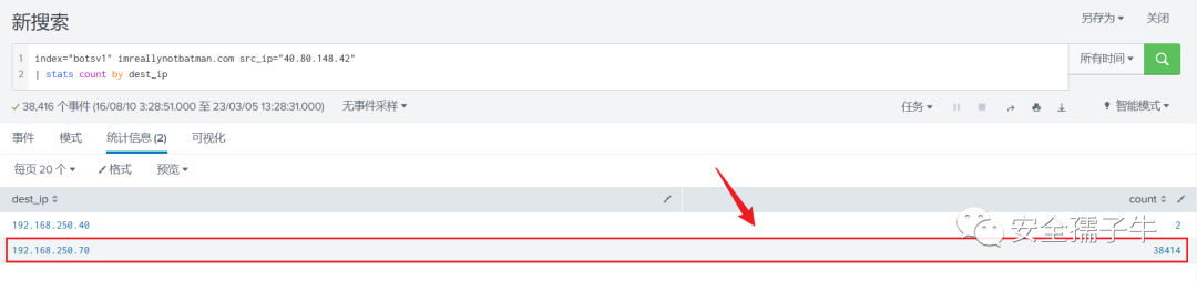 查看攻击IP地址通信的目的IP地址信息,获取到2个IP地址,查看192.168.250.70请求数量比较多