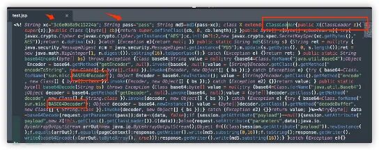 选择默认脚本编码生成的情况下,jsp会出现xc,pass字符和Java反射(ClassLoader,getClass().getClassLoader()),base64加解码等特征
