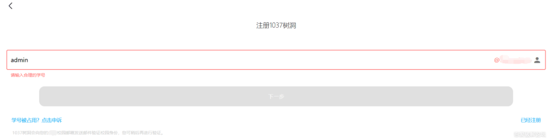 由于传播、利用本公众号天驿安全所提供的信息而造成的任何直接或者间接的后果及损失,均由使用者本人负责,公众号天驿安全及作者不为此承担任何责任,一旦造成后果请自行承担!如有侵权请告知删除并致歉。谢谢!从发现开始,会比较啰嗦而且长。上班闲着蛋疼,无意中发现该学校树洞里面分享的一些看着挺有趣的。但评论和点赞都需要登录,我们到注册页面看看。发现是一串+上@xxx.xxx一看就是邮箱注册。