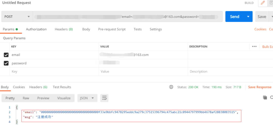 试试看用别的邮箱能不能注册,并验证吧~ 发现页面有校验,并且写死了。懒得去看js了,我真的没耐心呜呜呜。走走捷径看看F12打开,获取一下注册时候的动作,发现一个mobileRegister,并且把注册信息提交少去了。不错不错这样我就直接发请求就好了。