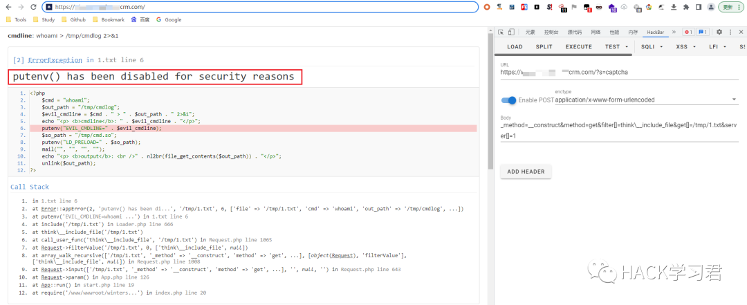 php脚本中是执行一个whoami命令,结果function_disablefunc限制死了,mail中用来bypass的putenv被禁了,第2个思路也宣布失败。。。