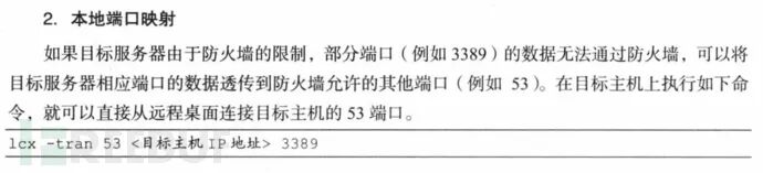 将 Web服务器192.168.1.11作为跳板,将内网数据库服务器1.1.1.10 的3389端口映射到服务器机器192.168.1.4的1153端口,再访问服务器的1153端口,就可以访问1.1.1.10的3389端口了。在服务器上执行如下命令,