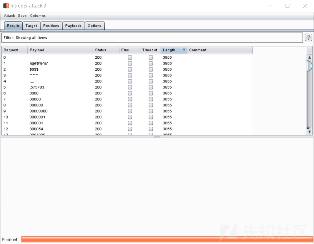 他这里会校验用户名,通过检测不会对访问次数进行限制,那还等啥?burp一梭跑, 刚好让他尝尝我大字典的厉害