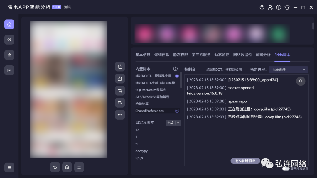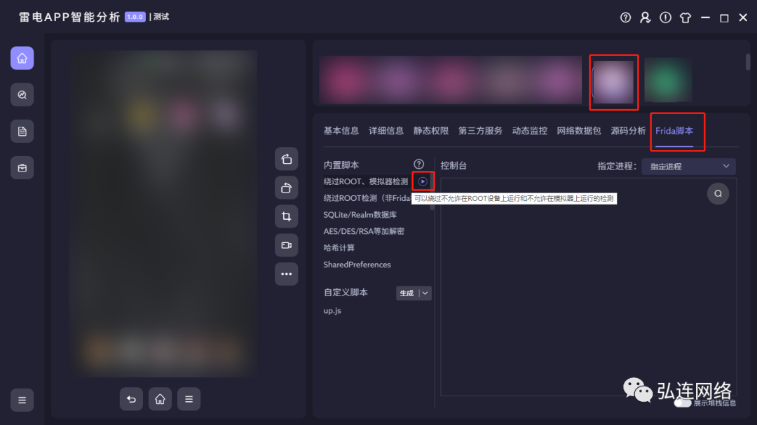 雷电APP智能分析Frida脚本功能,可利用Frida动态插桩技术,对内存空间里的对象方法进行监视、修改或者替换某一段代码,从而截获到重要信息。同时雷电APP智能分析中提供了一些常用的内置脚本供大家参考使用,来看看都有哪些吧。