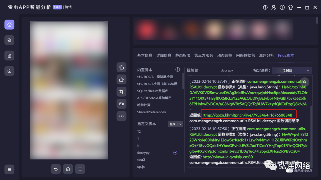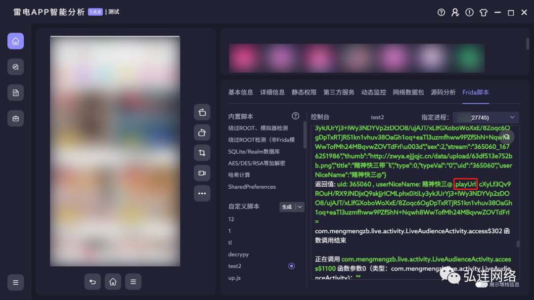 至此,我们就成功利用了弘连雷电APP智能分析Frida脚本获取了该直播APP的地址。