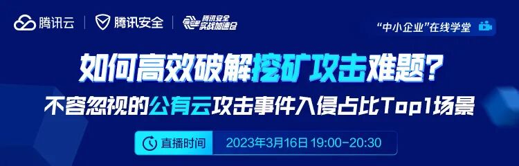 3月16日,腾讯安全、腾讯云聚焦云原生安全防挖矿的痛点场景,联合举办《如何高效破解挖矿攻击难题》主题公开课。本次直播邀请到中国信通院安全所高工郑威、腾讯云安全服务应急专家高智鹏、金融机构知名安全专家何启翱、腾讯云原生安全产品专家钟壮豪、腾讯安全服务产品经理王璐,从“攻”、“守”两个视角为大家演示和讲解云原生安全挖矿场景最佳实践,以期帮助中小企业构建更高效、安全、省心的云原生安全防护体系。