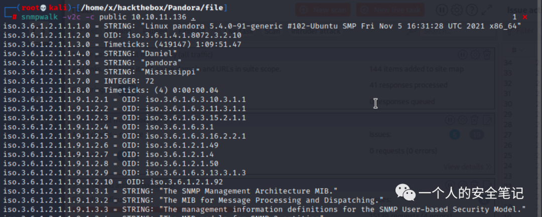 使用 Nmap 对目标服务器进行开放端口枚举,发现存在 UDP 161 端口 SNMP 协议。通过该协议的信息泄露得到进程执行命令,该命令中含有 ssh 登录用户名及明文密码。使用该组账号成功 ssh 登录目标服务器,获取初始立足点。