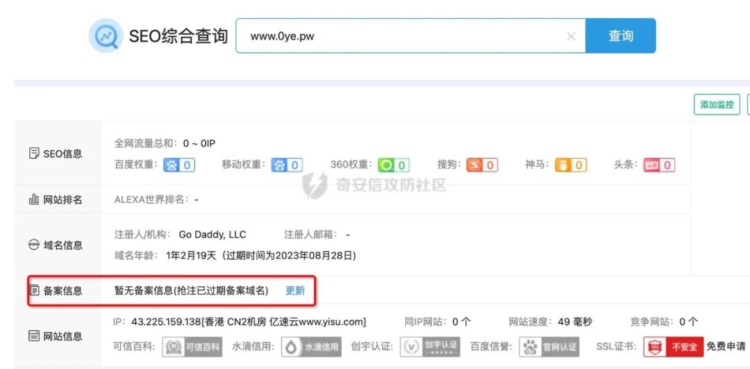 发现都是香港的IP,也没有进行备案。