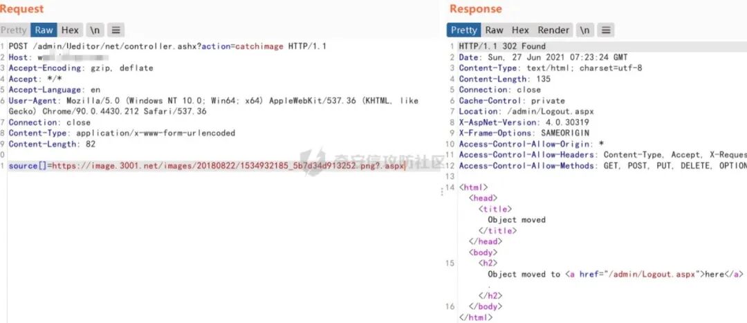 配置防火墙策略,禁止外网ip访问admin目录(漏洞存在于admin目录下)2、禁止外网IP访问f_load目录(上传后的文件存在于f_load目录)。3、当用户访问admin/Ueditor/net/controller.ashx?action=catchimage时,跳转到admin/Logout.aspx页面4、当开发人员到达现场后,立即让他们将上传成功后的回显关闭了。当遇到类似的应急响应事件后,可以按照以下几个步骤进行处理:文章来源:奇安信攻防社区(苏苏的五彩棒)原文地址:https://forum.butian.net/share/889