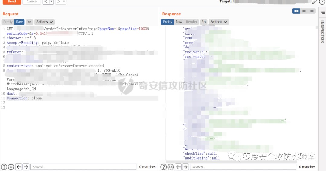 除此之外,测试一些参数,比如手机号,不知道该系统用户手机号时,可以试试像上面说的将其置空,往往运气好能碰上系统后端查询使用的模糊查询为空时返回所有信息,下面贴图的案例就是将手机号参数置空后,成功获取到账号详细信息
