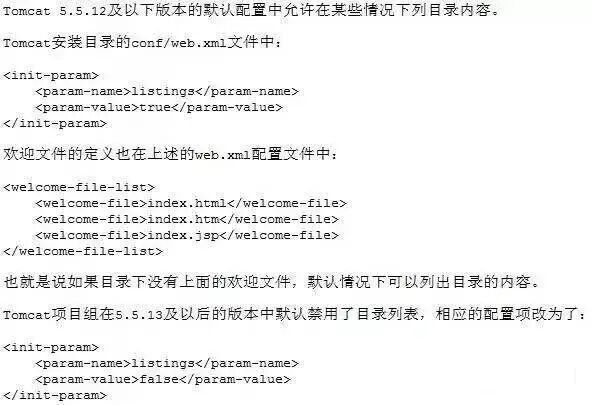Tomcat 的默认配置允许列某些目录的文件列表。