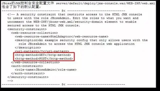 对控制台访问接口的访问控制默认配置只禁止了HTTP的两个主要请求方法GET 和POST,事实上HTTP 还支持其他的访问方法,比如HEAD,虽然无法得到的请求返回的结果,但是提交的命令还是可以正常执行的。