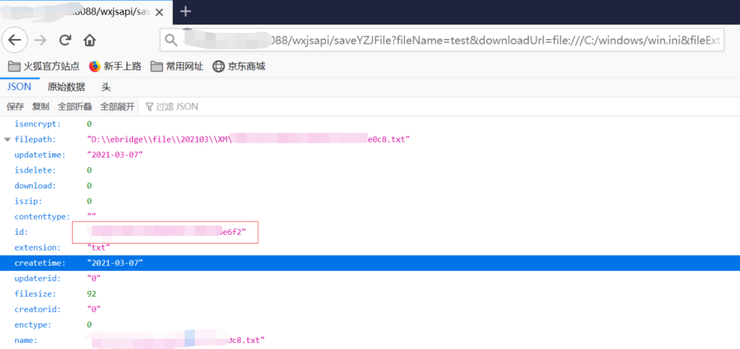 1.访问第一个payload,拿到响应包,其中id就是我们要的值(这里也就是我们判断漏洞的第一个点,这里需要考虑到windows和Linux两种操作系统不同的敏感文件的路径,windows我一般习惯用C:/windows/win.ini,linux习惯用/etc/passwd)