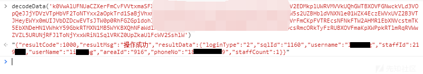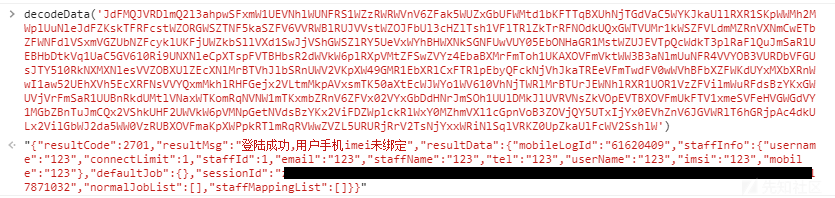 仔细观察返回的数据,其中有username(用户名)、staffId(职工号)、email(邮箱)、staffName(姓名)、tel(手机号)、mobile(手机号),然而这些数据都是我刚刚自己随便构造的,这里应该需要一个真实的用户信息,供后续的登录流程使用