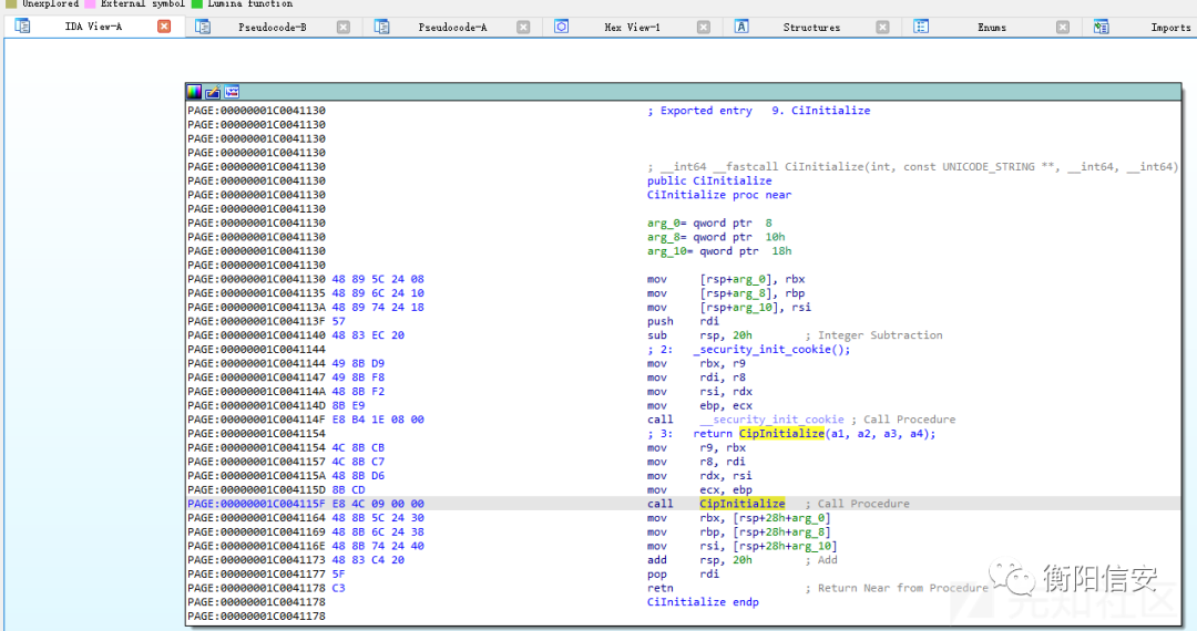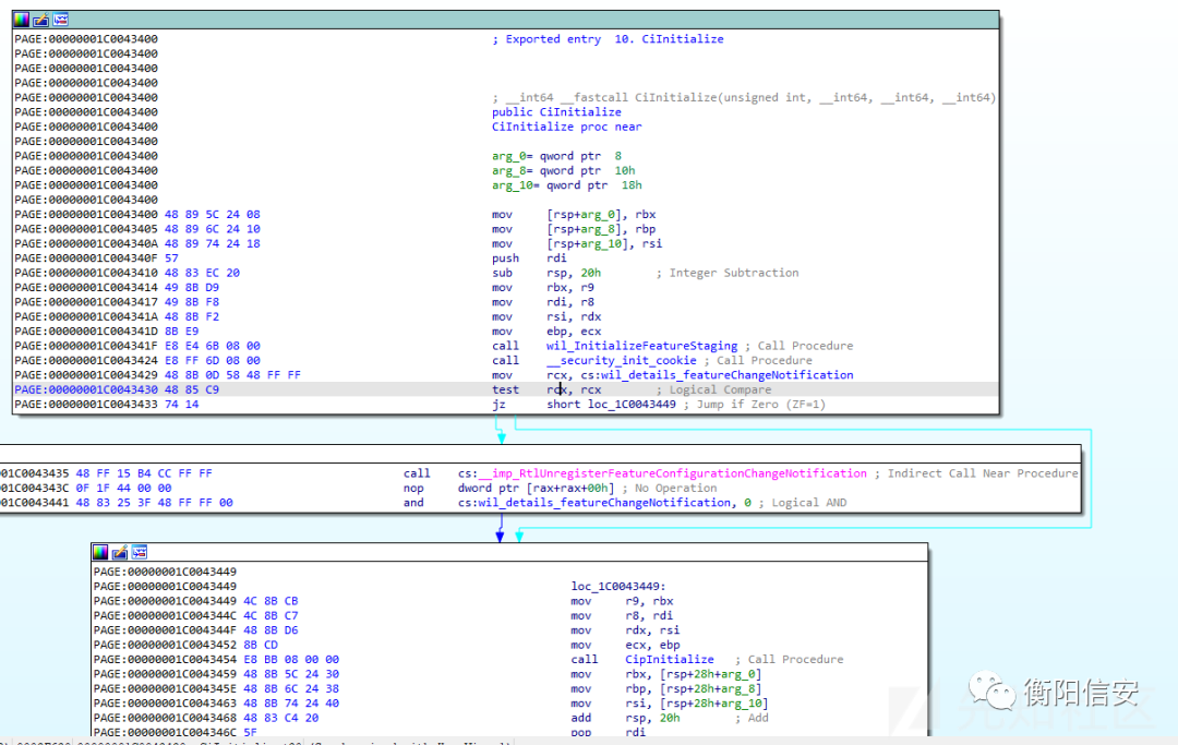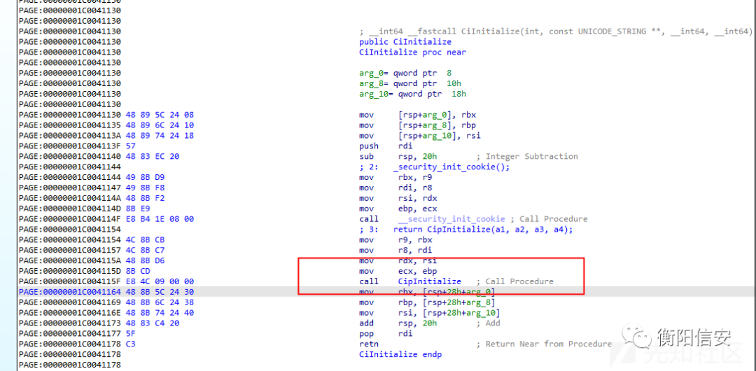 在CI.dll的导出函数CiInitialize中调用了CipInitialize函数。