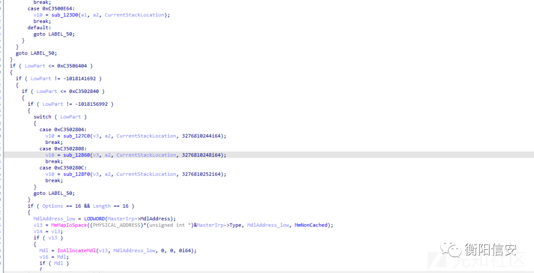由那边公开文章可知,0xC3502808 内置memcpy功能,随意逆向gdrv.sys,找到0xC3502808分支。