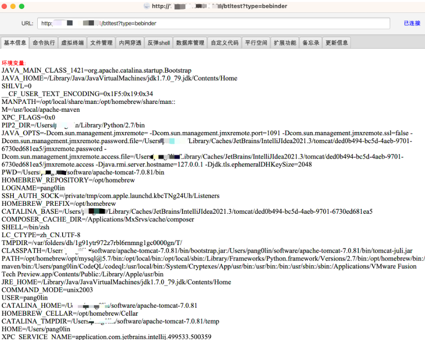 2、CommonBeanutils1TomcatMemshell,利用方式是使用冰蝎进行链接/btltest,密码是123,增加header头X-Options-Bi: xxx,值可以随意