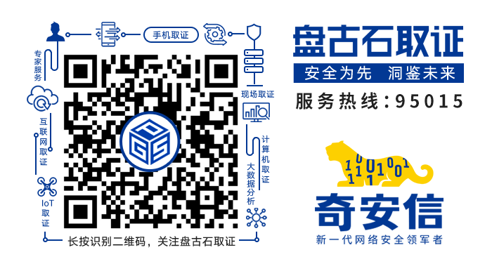 安全为先,洞鉴未来,奇安信盘古石取证团队竭诚为您提供电子数据取证专业的解决方案与服务。如需试用,请联系奇安信各区域销售代表,或致电95015,期待您的来电!